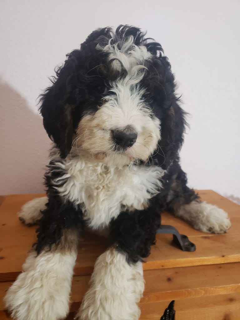 This is Emily she is looking for a forever new home updated on current vaccines deworm vet exam more information call or text 260 4091062 comes with collar and baggie puppy feed price 2000 Bernadoodle