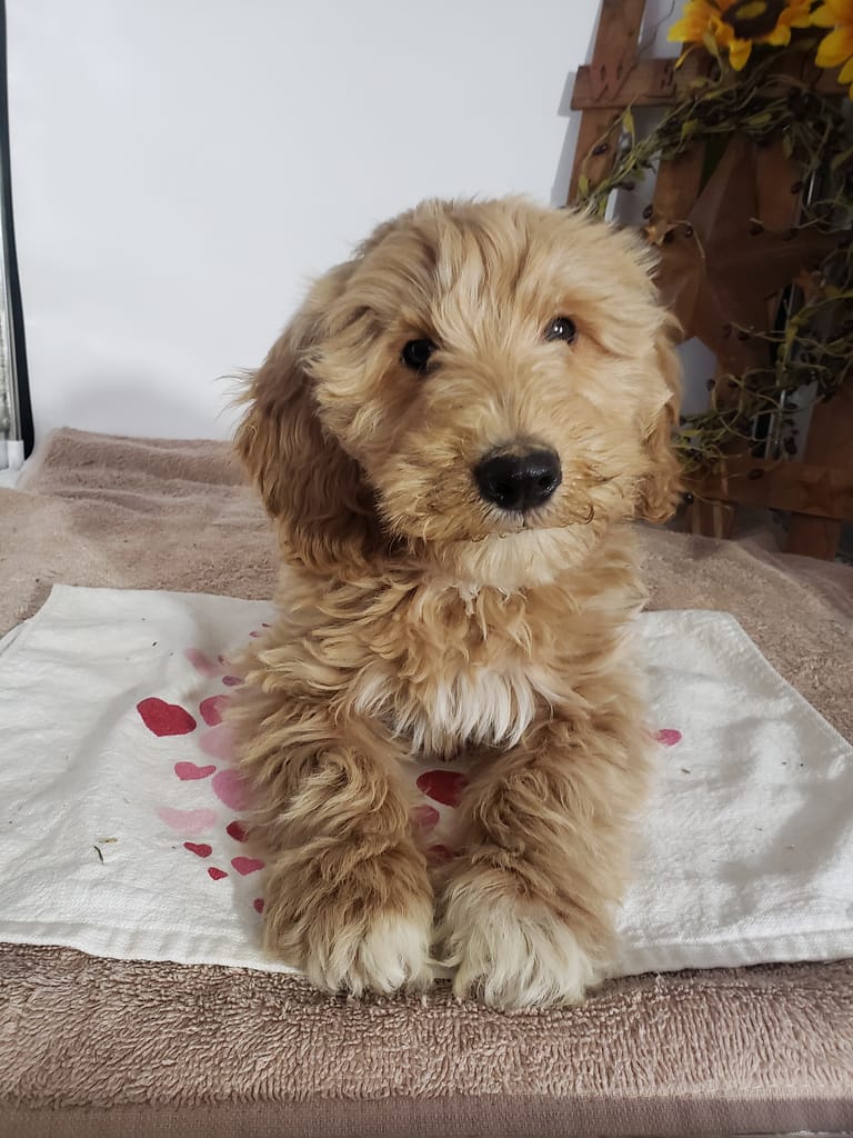 This is Benji he is looking for a forever new home updated on current vaccines deworm vet exam more information call or text 260 4091062 price 800.00 mini Goldendoole F1B comes with collar and baggie puppy feed by Clara Lengacher | Jan 13, 2026 | General