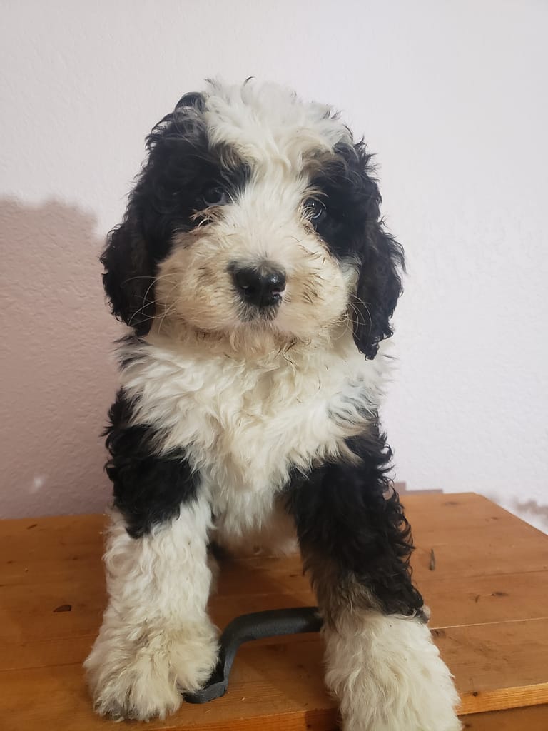 This is Benji he is looking for a forever new home updated on current vaccines deworm vet exam more information call or text 260 4091062 price 2000 comes with collar and baggie puppy feed Bernadoodle by Clara Lengacher | Feb 4, 2026 | General